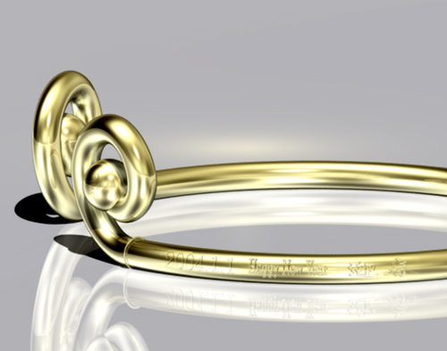 | 『猿年』 またまた,2004年度年賀状の作品。年末位しかやる時間がないので(^_^;)西遊記に出てくる孫悟空のしていた緊箍児を申年にちなんで作りました。 |